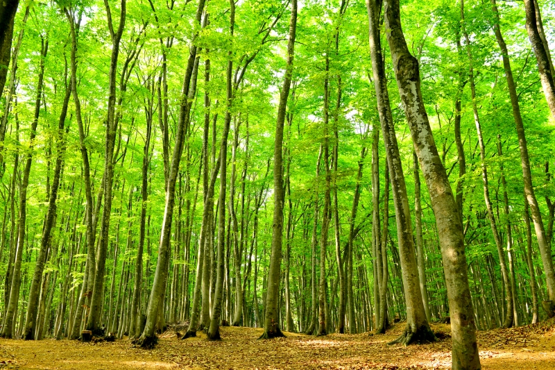 「美人林」は、世界有数の豪雪地帯にある新潟県十日町市松之山の北に位置する場所にあります。まっすぐ伸びたブナ林の丘陵が広がっていて、その立ち姿が美しいことから「美人林」と呼ばれるようになったそうです。