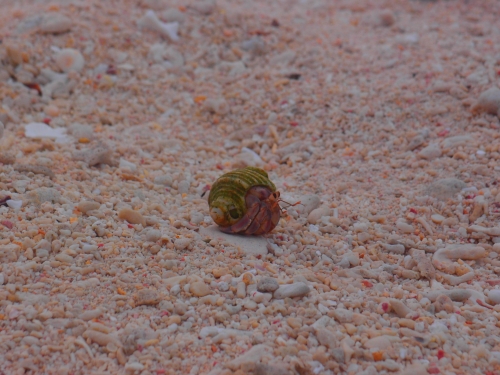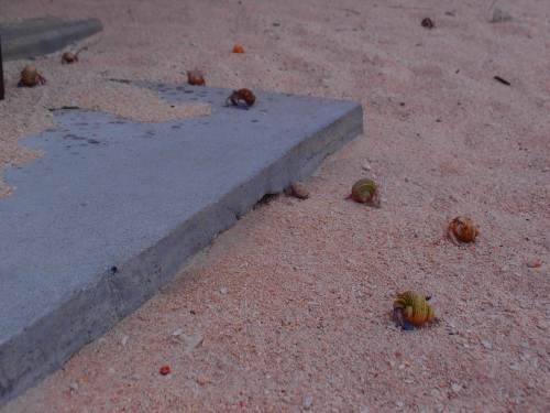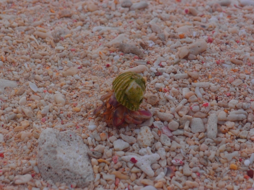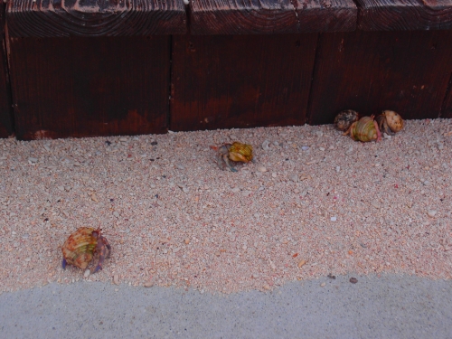 人の気配がなくなると、それを待ちわびていたかのように動き出す生き物がいます。ヤドカリです。