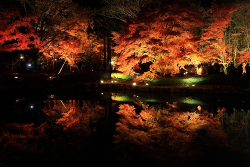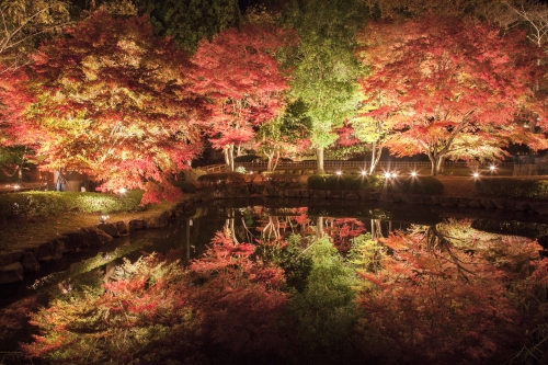 紅葉がライトアップされ、「逆さ紅葉」も楽しめる