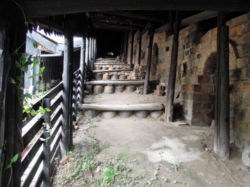公園内にある展示工房館では、登窯の見学や、素焼きの陶器への絵付け体験が行えます。1階に展示されている登窯は、両面焚倒焔式角窯(りょうめんだきとうえんしきかくがま)という珍しいもので、窯の正面に2つの入口があるのが特徴です。窯の中に入って見学することもできますよ。
