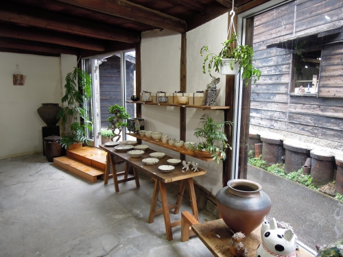 常滑屋は、土管工場であった建物を改装して平成7年にオープンしたお店で、カフェにギャラリーを併設しています。土管を椅子に使った雰囲気ある店内で、常滑焼の陶磁器を眺めながら、ドリンクやランチをいただけます。