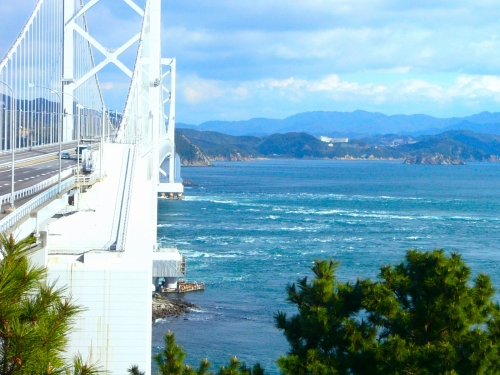 海峡の上には大鳴門橋架橋が掛けられており淡路島と結ばれています。海峡周辺には大鳴門橋を歩いて渡り橋の上から渦潮が見学できる「渦の道」や、大鳴門橋や鳴門海峡を間近でみれる「千畳敷展望台」、うずしお観光船乗り場など数多くのスポットがあります。