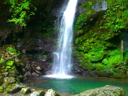 かずら橋から徒歩1分の所にある「琵琶の滝」や、祖谷川の美しい渓谷美など自然の景観がとても美しい場所です。