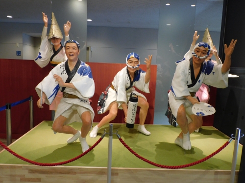そんなハイシーズンでなくても年間を通して「阿波踊り」ついて知れ、体験できるのが「阿波踊りミュージアム」です。阿波踊りの歴史の紹介や、踊りに使われる小道具の展示、阿波踊りの映像放映などの他、毎日「阿波踊り」が上演されています。