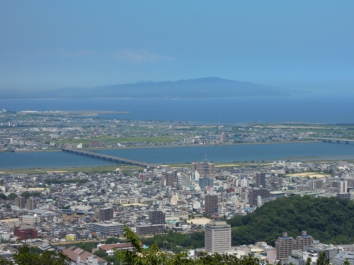 こちらは、山麓に広がる徳島市の市街地です。河川に囲まれた中心市街に、多数のビルやマンションが立ち並んでいるのが見えています。ロープウェイは、4月から10月末の間の毎日、それ以外の月は、土曜日と特定日に夜間も営業しているので、夜景を楽しむのも良いですね。