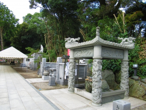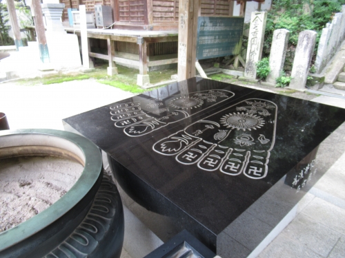 境内で注目したいのは、釈迦の足を模ったとされる「仏足石(ぶっそくせき)」や、弘法大師がお手植えされたと言われている「長命杉」です。手水舎の造形も特徴的で、霊山寺に続き参拝者を飽きさせない寺院です。こちらの寺院も仁王門横に売店があり、お遍路に必要なアイテムを購入することができます。