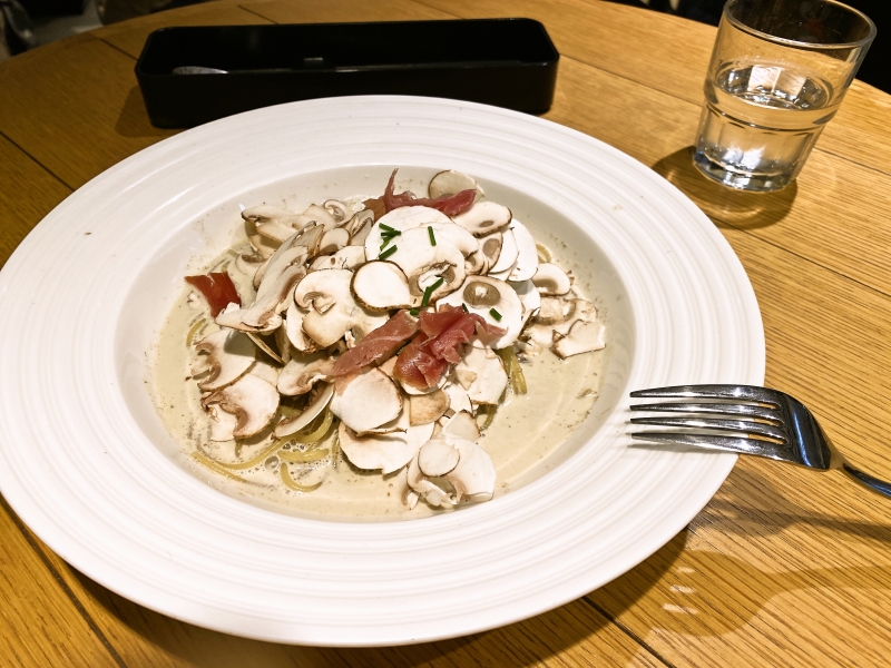 看板メニューといえば山形県舟形町(ふながたまち)のマッシュルームをふんだんに使用した「舟形マッシュルームと生ハムのクリームソーススパゲティ」。薄くスライスした生のマッシュルームが、コクのあるクリームソースパスタにこれでもかとトッピングされています。そのほかパスタやピザ、デザートとお子さんも大満足のラインアップが魅力です。