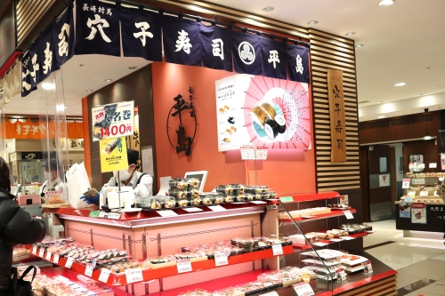 江戸前寿司の代表格・穴子寿司が買える「平島」。握り寿司や巻き寿司など、様々なお寿司が売られています。
