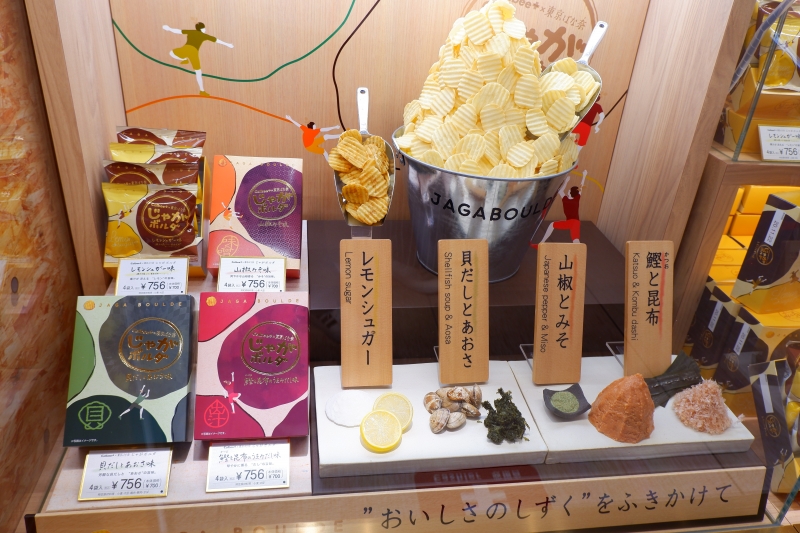 東北・上越新幹線の乗り場の近くにあるポテトチップス専門店「じゃがボルダ」。カルビープラスと東京ばな奈とコラボして誕生したお店で、おやつはもちろん、お酒のおつまみにピッタリなポテトチップスを販売しています。
