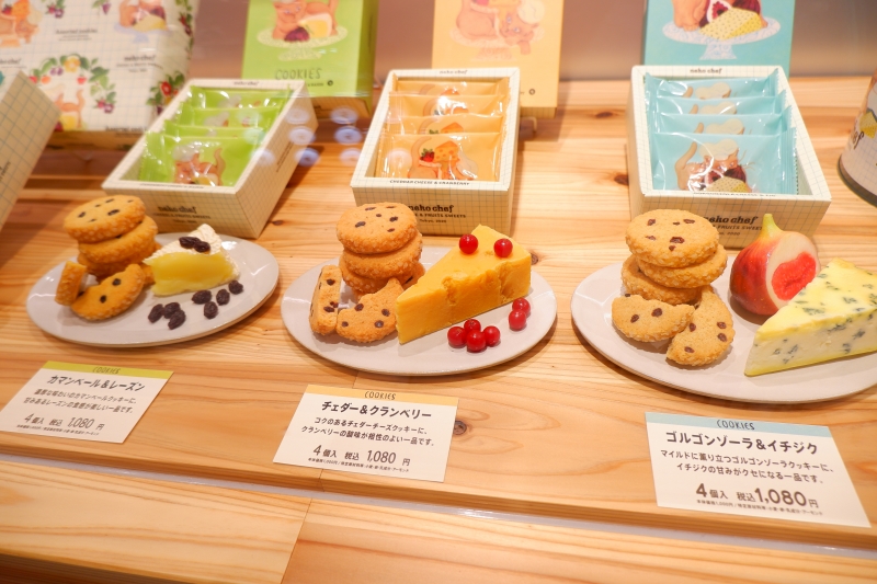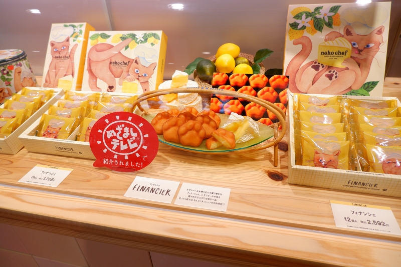 “果実をたのしむチーズ”をテーマにしたスイーツを取り扱う「neko chef(ネコシェフ)」。メインキャラクター「ネコシェフ」をモチーフにしたパッケージが特徴的で、生ケーキや半生菓子、焼き菓子などを取り揃えています。