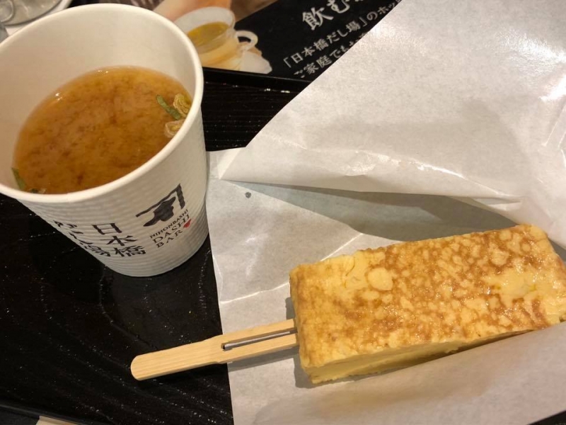 また本店内には、だしを使った汁物が味わえる「日本橋だし場」も併設。にんべんのかつお節を使った味噌汁をはじめ、かつお節をたっぷりトッピングした「かつおぶしめし」(税込150円~)、玉子焼きなどを堪能できます。