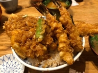 写真:旅田サトシ だしおこげ(税込399円) |  写真:旅田サトシ かつおだし みそ仕立て(左・レギュラーサイズ税込150円)と手焼き玉子焼き(右・税込150円) |  写真:旅田サトシ 天丼 金子半之助 本店 |
