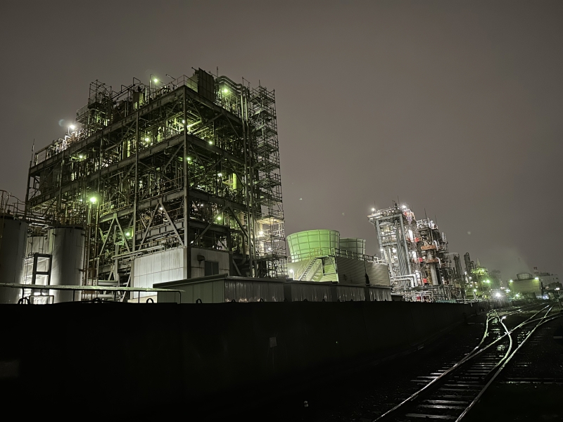 レインボーブリッジを通過して、川崎工場へ。埋立地の人工島にあり車やバスではないと行きづらい場所ですので、幻想的な雰囲気を味わいたい方はおすすめのコースです。