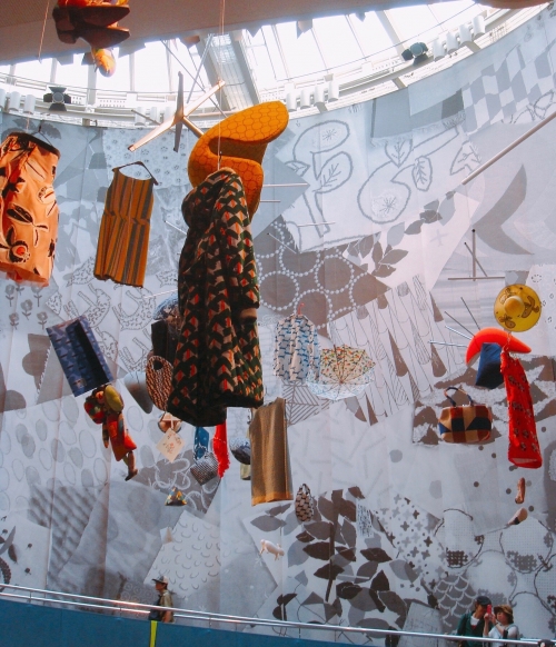過去には、マリメッコのデザイナーの鈴木マサルさん(写真左)、ミナ・ペルホネンのデザイナーの皆川明さん(写真右)などの企画展が開催されました。普段はお店に陳列されている傘や洋服がこんなふうに楽しくディスプレイされていると、その世界観をより深く感じることができます。