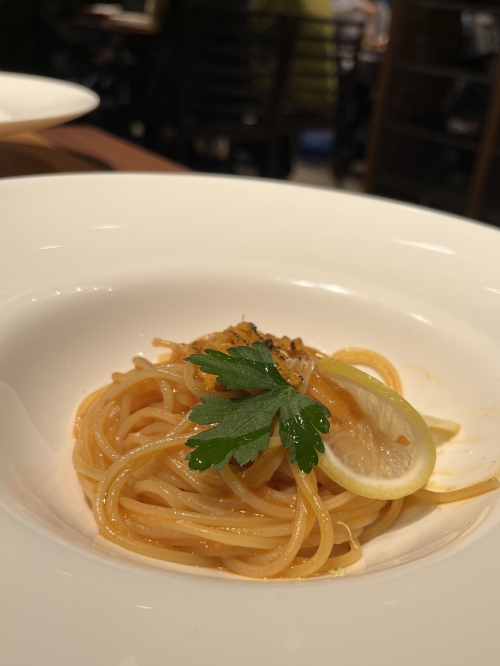 写真:bluemoonシェフのスペシャリテランチコース「雲丹のスパゲッティーニ 特製アーリオ・オーリオ」