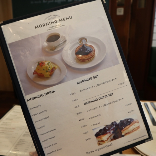 パンケーキは季節限定のメニューも用意されており、平日の朝はパンケーキとエッグベネディクトとドリンクがセットになったお得な「モーニングドリンクセット(税込1,220円)」もあるので、1人で訪問した際には良さそうです。