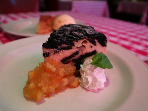 デザートには、シナモンがたっぷりの温かい「シナモンアップルパイ with バニラアイス」や、濃厚な「ブルックリン クッキー&クリームチーズケーキ」ケーキがおすすめです。アメリカンサイズなので、量でも味でも大満足できるデザートです。