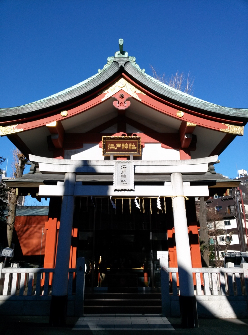 神田明神社殿裏にある摂末社のひとつが「江戸神社」です。「神田明神」よりも古い歴史を持つ、江戸最古の地主神とされていて、御祭神は建速須佐之男命(たけはやすさのおのみこと)です。江戸城の最初の城主である江戸氏の氏神でしたが、江戸城が拡張される際に、神田神社に遷座したということです。「江戸」の原点を見るようで楽しいですね。