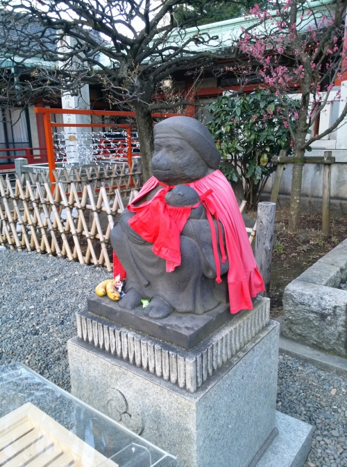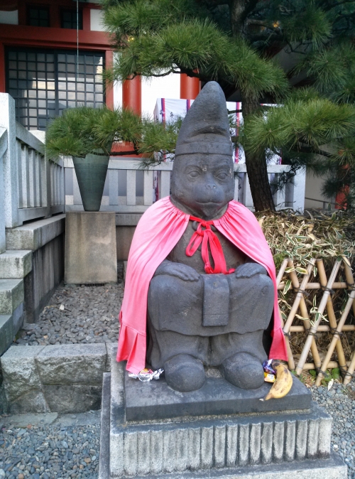 日枝神社のマスコット、ならぬ眷(けん)族は「サル」です。日枝神社の本殿の左右に男のサルと女のサルがいます。