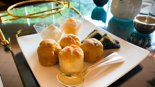 また定番のスコーンは焼きたてがサーブされ、ゴーダ&グラナパダーノチーズのスコーンとレモンスコーンの2種類が味わえます。ちなみにこのスコーンとお茶はおかわり自由!心ゆくまでお茶とスコーンが楽しめる、コスパ最強のアフターヌーンティーです。