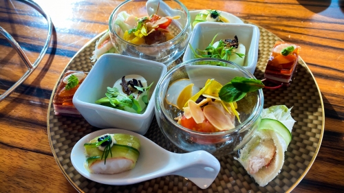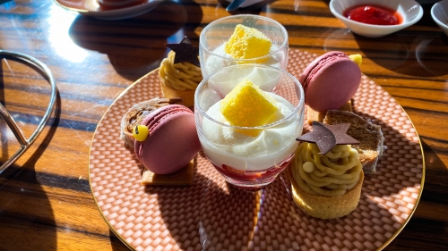 まずは突き出しの紅茶プリンから始まり、スイーツ6種類・焼き菓子4種類・セイボリー6種類・スコーン3種類とガレット・マドレーヌと、合計22種類の食事がサーブされる、まさに他には無いボリューム。ちなみにお食事は全てオリジナルの木箱に入った状態で提供され、一段ずつ引き出しを開けていただきます。