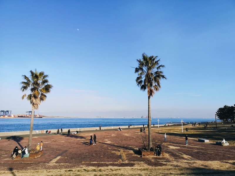 また東京港や羽田空港の航路が近いので、間近で飛行機の離発着が見えたり、船が行き来する姿を見ることができます。ピクニックをしながら、海と飛行機と船の最高のコラボが楽しめる公園です。