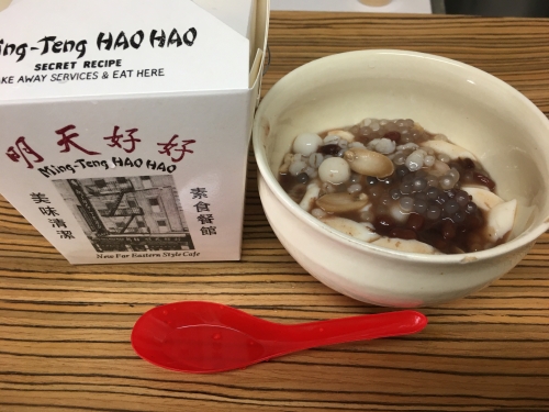 中でも一番人気は明天豆花(800円)で、小豆が入っておりシロップもぜんざい風。上品な大きさの小さな白玉団子や茹でピーナッツ、ハトムギと小豆がぜんざいシロップとよくマッチしており、日々の疲れも吹き飛んでいきそうなほど元気が出る逸品です。