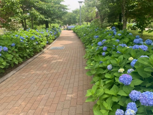夏を感じさせる青空と紫陽花の共演がとても美しいので、お散歩がてらにぜひ歩いてみて下さいね♪