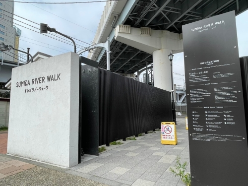 起点・終点はすみだリバーウォークの袂(墨田区側)にあり、道路を挟んですぐ向かいには東京ミズマチもあります。
