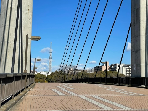 手入れの行き届いた花壇やスカイツリーを見ながら走ることができ、公園のシンボルである木場公園大橋からの眺めは特に素晴らしいです!