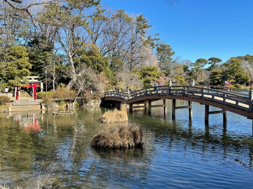 園内の見どころも豊富で、池月橋や水生植物園、勝海舟夫妻の墓や西郷隆盛留魂碑などがあります。