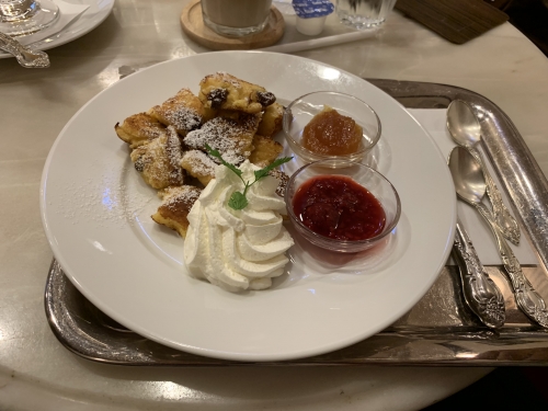 ウィーンといえば、ザッハトルテが有名ですが、それ以外にも美味しいものはたくさんあります。筆者のお気に入りはパフェです。かなりボリュームがあり、ゼリーや生クリーム、アイスなどが重なり合って見た目もかわいく、最後まで飽きずに食べられます。ウィーン風パンケーキは、生地がトロッとしていてパクパク食べられて、付け合わせのコンフィチュールが最高に合います。