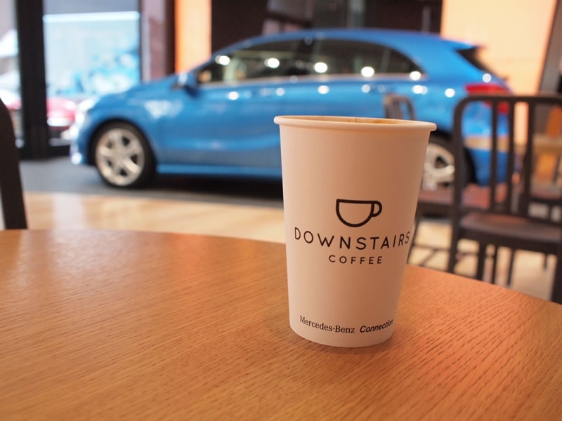 六本木にあるメルセデスベンツのショールームに併設されているカフェ。というと少し敷居が高いように感じてしまうかもしれません。しかし全くそんなことはなく、普通のカフェと同じように、お客さんたちはそれぞれに思い思いの時間を過ごしています。パソコンを広げている人の姿もちらほら。
