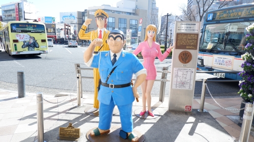 映画『男はつらいよ』の舞台である柴又は、改札を出ると寅さんの銅像がお出迎え。風情のある帝釈天門前参道がつづき、食べ歩きが楽しい。そして亀有は人気漫画『こちら葛飾区亀有公園前派出所』の舞台となった街。街には両さんや麗子さんなど15体の像が散らばっており、とっておきの写真撮影スポットになっています。