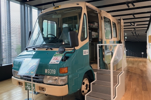 施設は3階で受付後、エレベーターで6階に上がり、スロープを下りながら展示を見て行きます。展示は創業に至った経緯や戦争を経て現在までの歩み、未来に向けての取り組みについて知ることができます。展示には、これまでの制服があり、実際に着て写真撮影したり、実際に使用していた車両に乗り込んで運転席や荷台の様子を見る事ができます。