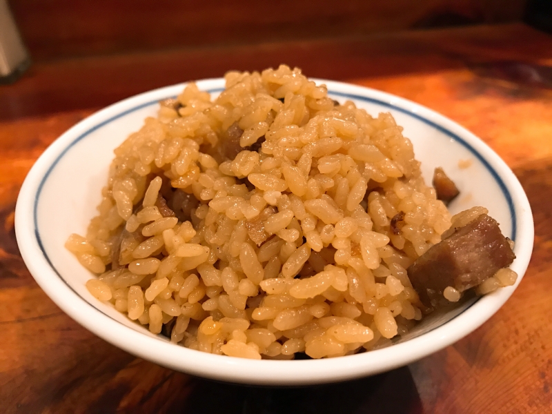 炊き込みご飯は、椎茸とチャーシューがスープとともに炊かれており、これまた美味です。