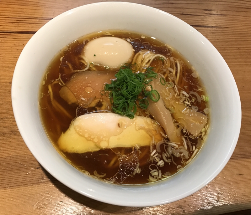 鶏油が光るクリアなスープ、醤油の主張が強くとても洗練された味わいです。穂先メンマの食感も最高です。