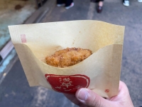 写真:旅田サトシ 浅草メンチ |  写真:旅田サトシ 浅草メンチ(1個・税込250円) |  写真:旅田サトシ 舟和 仲見世2号店 |