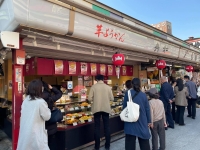 写真:旅田サトシ 天丼(えび2、かきあげ1 税込1,800円) |  写真:旅田サトシ 仲見世通り |  写真:旅田サトシ 木村家本店 |