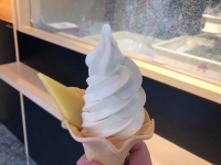 写真:旅田サトシ |  写真:旅田サトシ 芋ようかんソフトクリーム(税込350円) |  写真:旅田サトシ よろし化粧堂 仲見世店 |