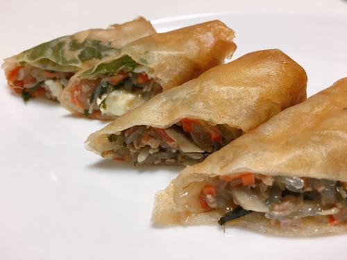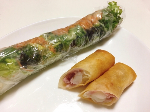 オーソドックスな「東京はるまき(190円)」とそのチーズ入りバージョン。ひき肉としらたきがたくさん入っているのが特徴です。デザート系の桜あん&白玉の春巻き(160円)や生春巻き(330円)も充実しています。