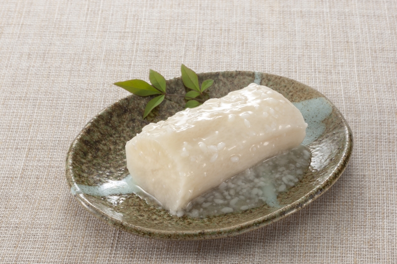 薄く塩漬けした大根を、甘酒をベースとした麹床で漬けなおした漬物のこと。塩でしっかり漬けたたくあんとは異なり、甘みが強いのが特徴です。ポリポリした歯ごたえと、独特の甘さがご飯のお供に良く合います。東京・日本橋にある「宝田恵比寿神社」では、毎年10月に「べったら市」と呼ばれる祭事が行われ、べったら漬けが販売されます。