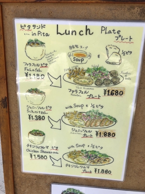料理はかなりクオリティが高く、イスラエル人が食べても「これは…!」となる気がします。ランチプレートにはイスラエルのソウルフード「フムス」が必ずついており、イスラエルの定番料理を網羅的に味わえます。イスラエルで定番のピタパンのサンドイッチもあります。