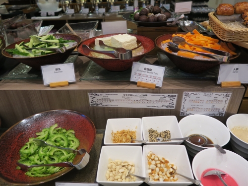 この「風庭」では、ランチには月替わりのビュッフェ、ディナーは和琉創作料理が頂けます。いずれも席数に限りがあるので、予約が必要となります。