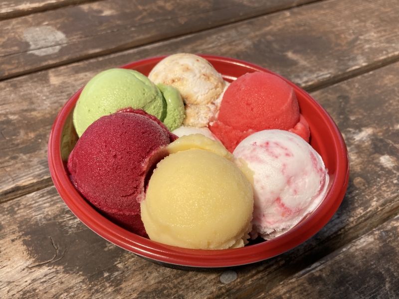 ミニじぇら丼(500円税込)は、好きなジェラート4種類をチョイスできます。