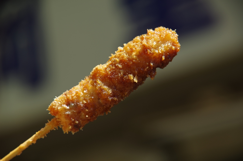 ホルモンといっても、お肉のホルモンではありません。ちくわを半分に切って、パン粉をつけ、油で揚げたものなんです。ソースとのハーモニーもたまらない!食べ歩きにもピッタリの富岡のソウルフードは、3本セットで120円(税込)です。