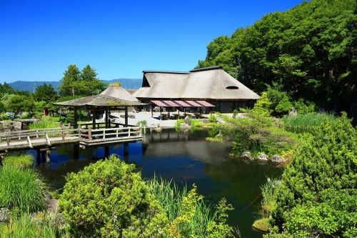 懐かしい遠野の農村を再現したスポット。映画やテレビのロケ地としても使用されます。畑があり小川が流れ、まるで本当に村人が暮らしているかのような、のどかな風景が広がるなかで、さまざまな農村体験を楽しむことができます。体験できるメニューは、竹トンボ作りやハンカチ染め、こけし絵付けなどの創作プログラムから、もちつき、そばうち、ヤマメのつかみ取りなど食のプログラムまで20種類以上!まぶりっと(守り人)と呼ばれるインストラクターさんが教えてくれます。