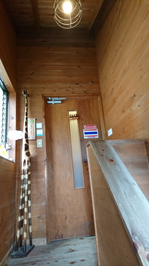 お店は建物の2階部分で、看板横にある木の階段を上っていくと入り口があります。