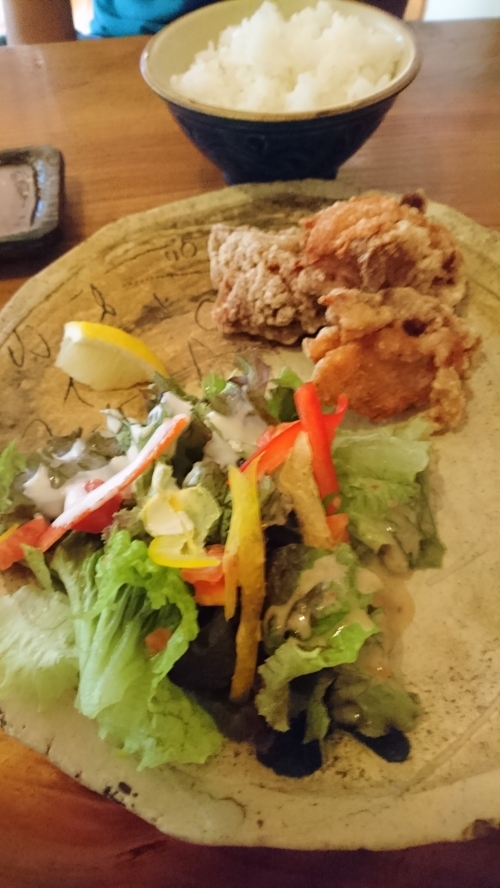 おかずも3種類の中から選ぶことができ、お店の人気メニューの1つであるタイ風からあげを選びました。大山鶏が使われた柔らかいお肉に、ピリッと辛いソースがよく合います。