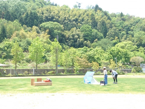 校庭は芝生化されており、子供達が走り回ったり、ハンモックに揺られたり、敷物をひいてピクニックを楽しんだりと、各々が自由に楽しめるようになっています。